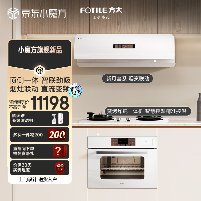 方太(FOTILE)烟灶蒸烤三件套 24巡航风量挥手变频烟机 5kW燃气灶 蒸烤一体机 F1-W+THF1-W+EF1.I-W价格:11198.00元!