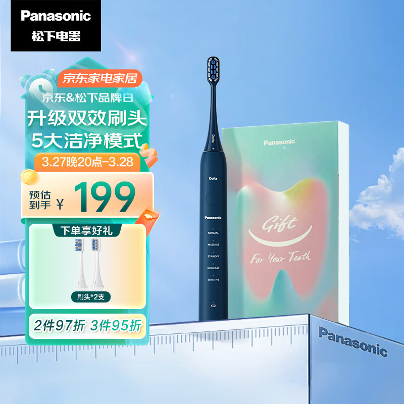 松下(Panasonic)电动牙刷小彩刷 软毛成人磁悬浮声波震动清洁 情侣款电动牙刷 生日礼物送男友送女友DC02蓝色价格:199.00元!