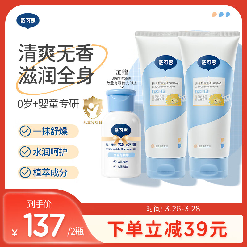 戴·可·思婴儿金盏花护理乳液 新生儿宝宝滋润身体乳 保湿润肤乳200ml*2价格:176.00元!