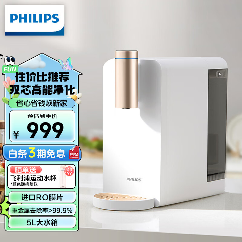 飞利浦(PHILIPS)时光机T50净饮一体机 家用净水器即热式饮水机 台式免安装反渗透直饮水机 ADD6813价格:999.00元!
