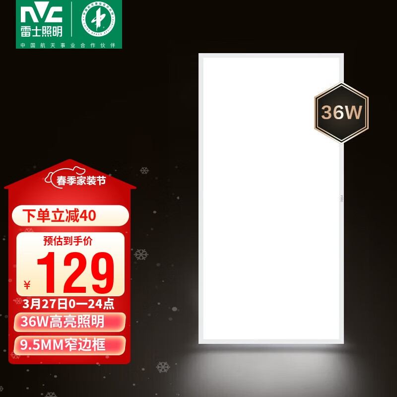 雷士(NVC)厨房灯 led集成吊顶厨卫灯吸顶灯 铝扣板卫生间平板灯 面板灯36W价格:169.00元!