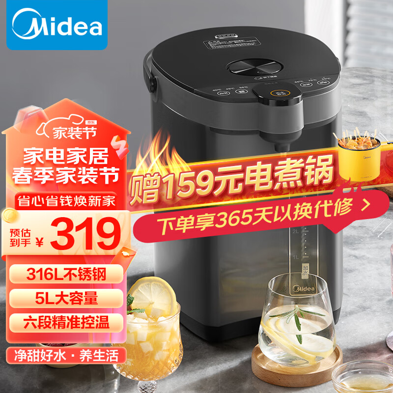 美的(Midea)电热水瓶不锈钢电热水壶 大容量电热水瓶多段温控电水壶 MK-SP50C505BPro(316L不锈内胆)价格:319.00元!