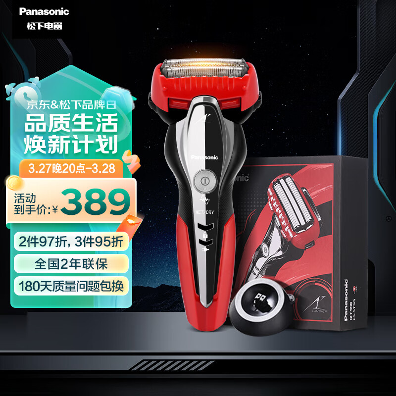 松下(Panasonic)经典5系剃须刀刮胡刀电动往复式磁悬浮马达进口三刀头生日礼物男士情人节送男友送父亲ST3Q红价格:389.00元!
