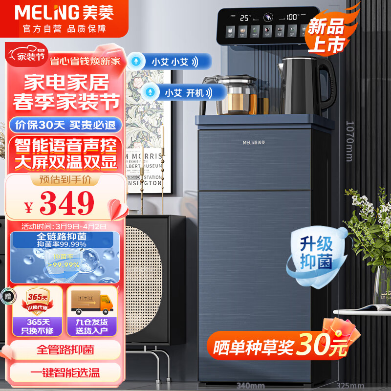 美菱(MeiLing)智能语音茶吧机家用多功能遥控大屏立式下置式一键选温自主上水饮水机温热款MY-C933(语音款)价格:379.00元!
