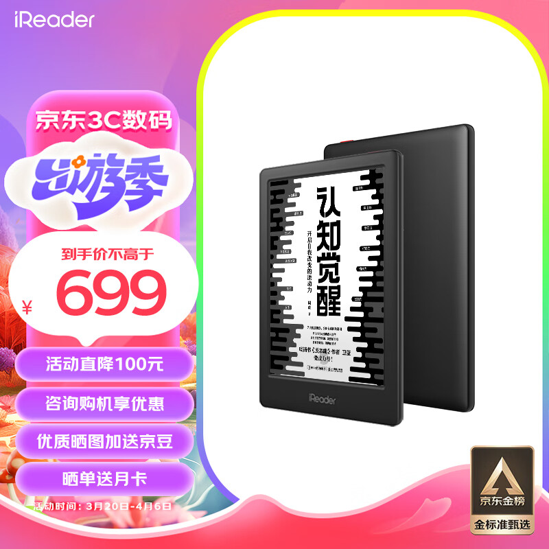 掌阅iReader Light3智能阅读本 电子书阅读器 6英寸墨水屏电纸书 32GB 沉墨价格:699.00元!