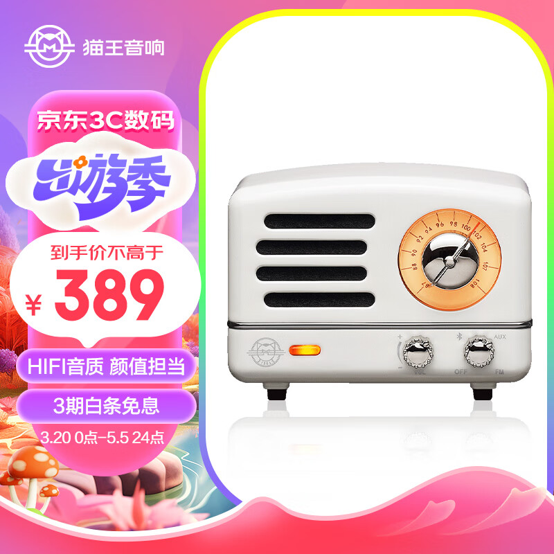 猫王收音机猫王音响 猫王小王子OTR无线便携式蓝牙音箱可爱复古小音响家用金属低音炮收音机 纯真白价格:389.00元!