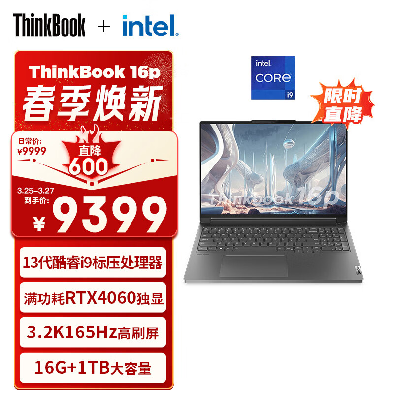ThinkPad联想ThinkBook 16p 英特尔酷睿i9 16英寸轻薄游戏本电脑13代i9-13900H 16G 1T RTX4060 3.2K 165Hz价格:9399.00元!