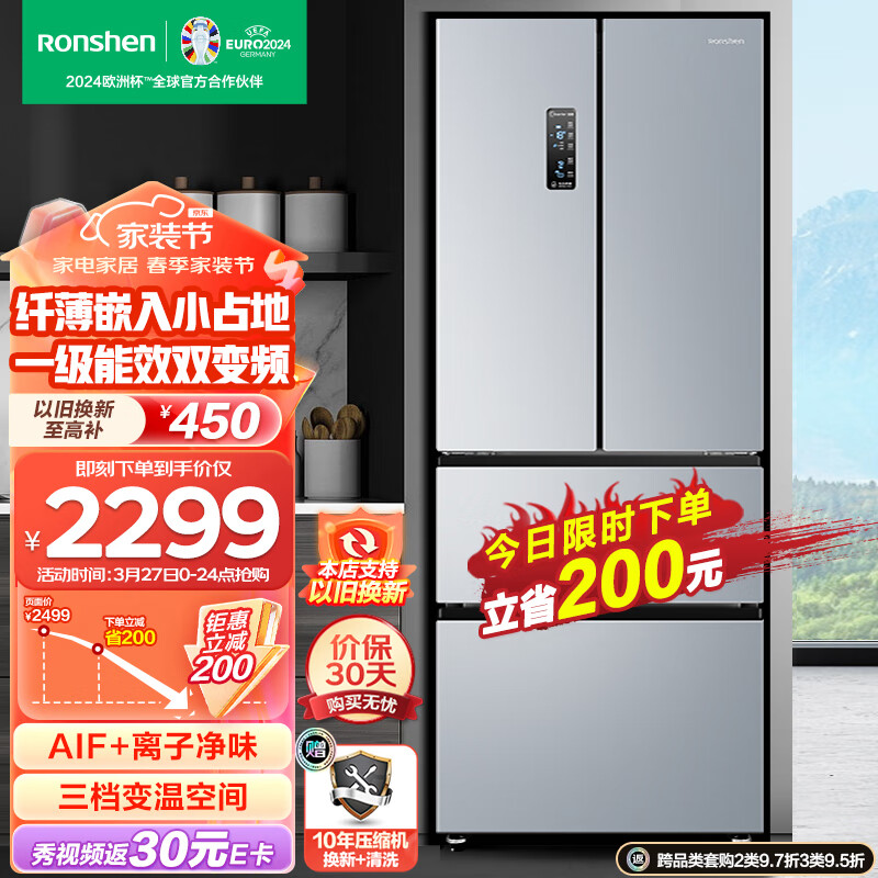 容声(Ronshen)319升变频一级能效法式多门四开门冰箱家用风冷无霜超薄大容量BCD-319WD11MP三档调温价格:2499.00元!