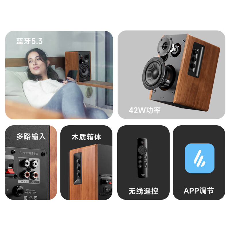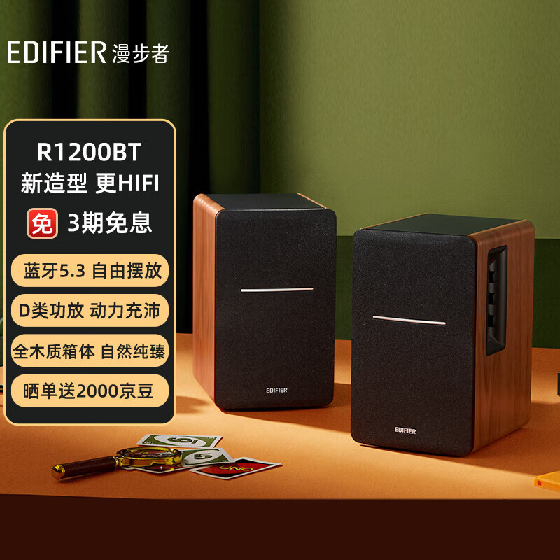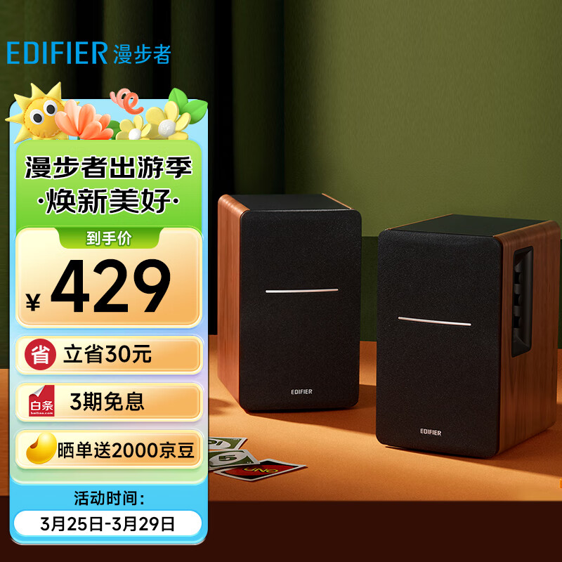 漫步者(EDIFIER)R1200BT 经典升级 2.0声道电脑音响 家用桌面台式机笔记本蓝牙音箱价格:429.00元!