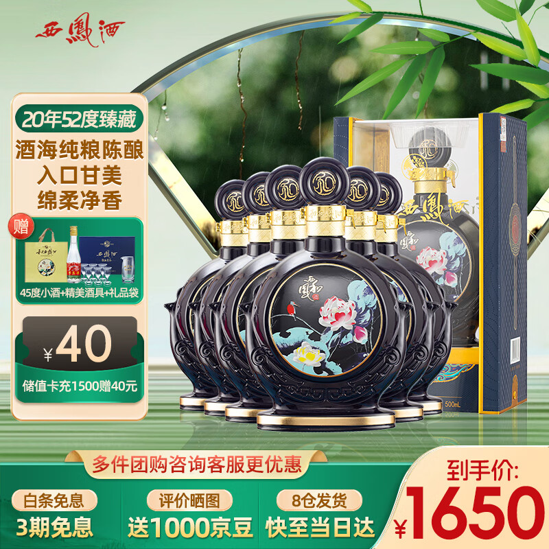 西凤酒 20年52度和系列陕西纯粮食凤香型白酒节日宴请送礼盒装500mL*6价格:1650.00元!
