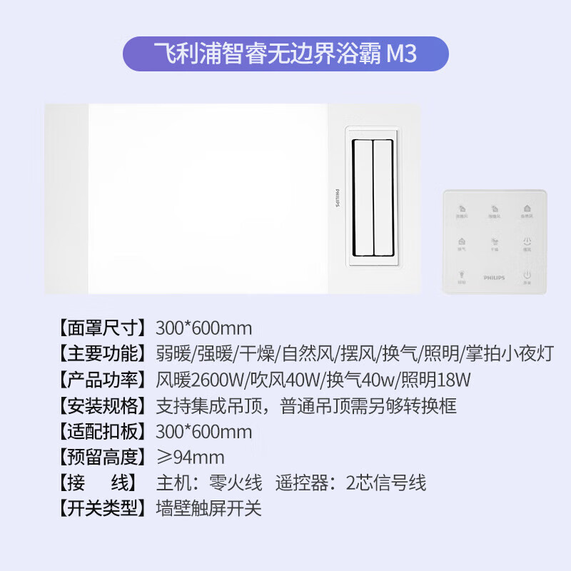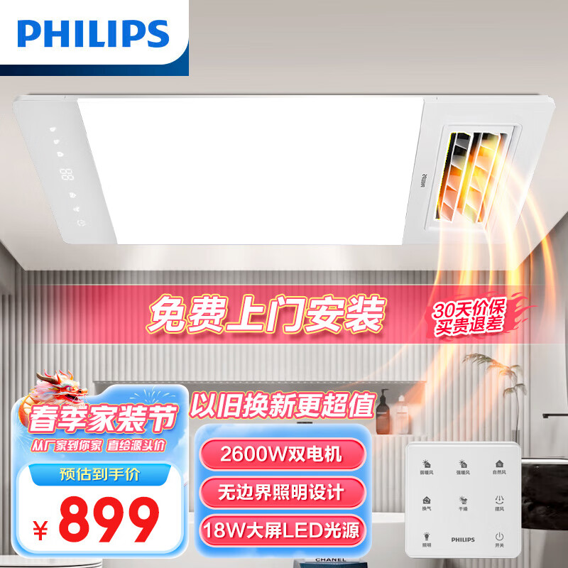 飞利浦(PHILIPS)M3浴霸2600W双核暖风排气扇照明一体 集成吊顶卫生间浴室暖风机价格:899.00元!