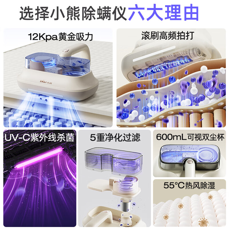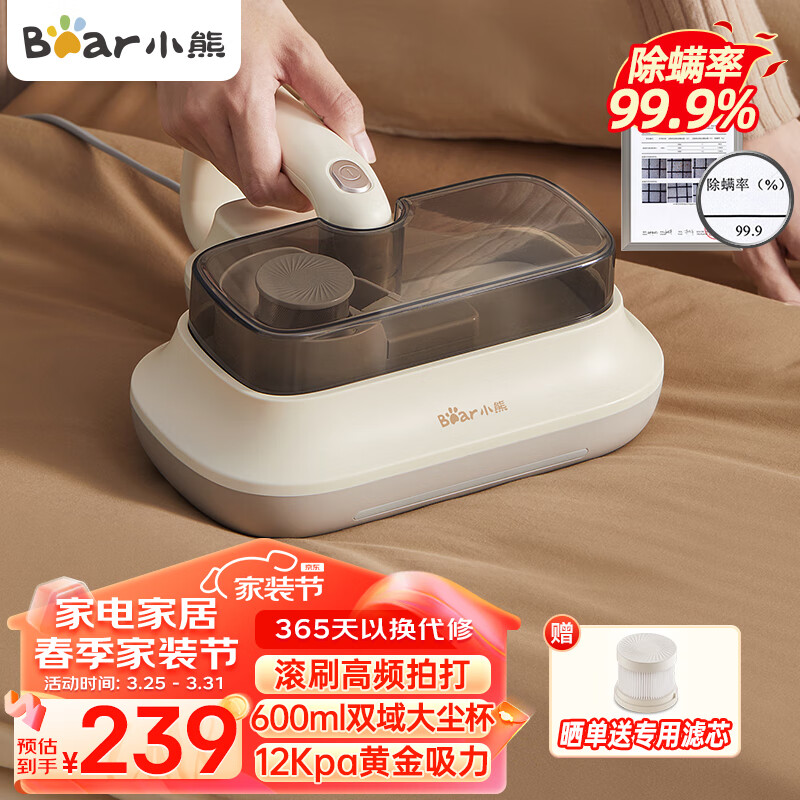 小熊(Bear)除螨仪家用除螨吸尘器床上大吸力除螨机手持去螨仪强力双拍打紫外线杀菌香薰 CMY-D03K5价格:239.00元!