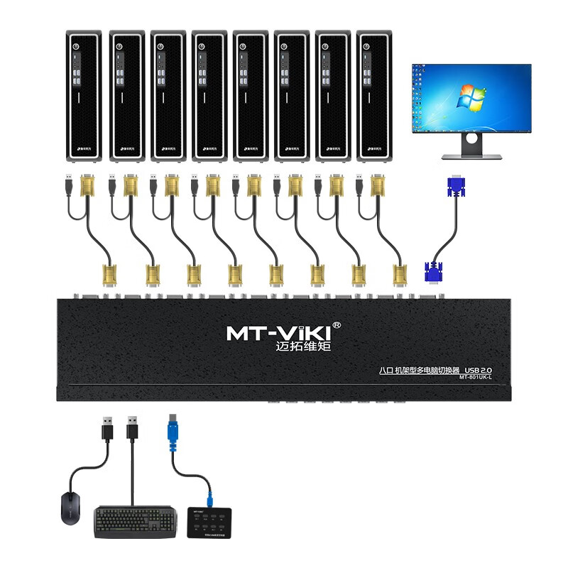 迈拓维矩 MT-viki KVM切换器8口vga八进一出鼠标键盘共享器配送kvm线 MT-801UK-L价格:356.00元!