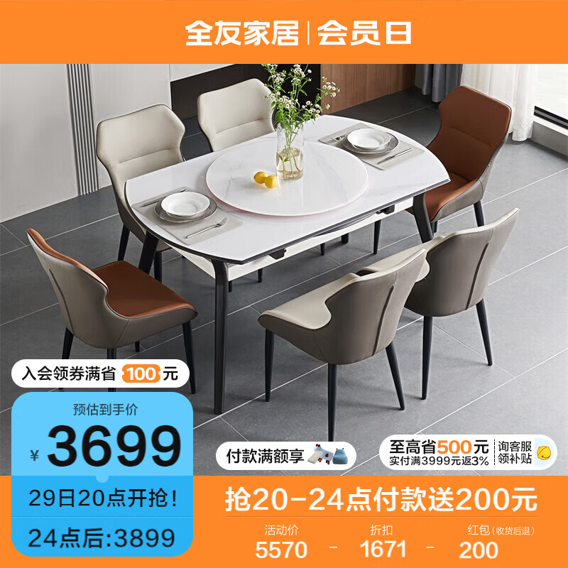 全友家居?轻奢钢化玻璃折叠餐桌椅组合可伸缩家用桌子饭桌家具DW1059价格:5570.00元!