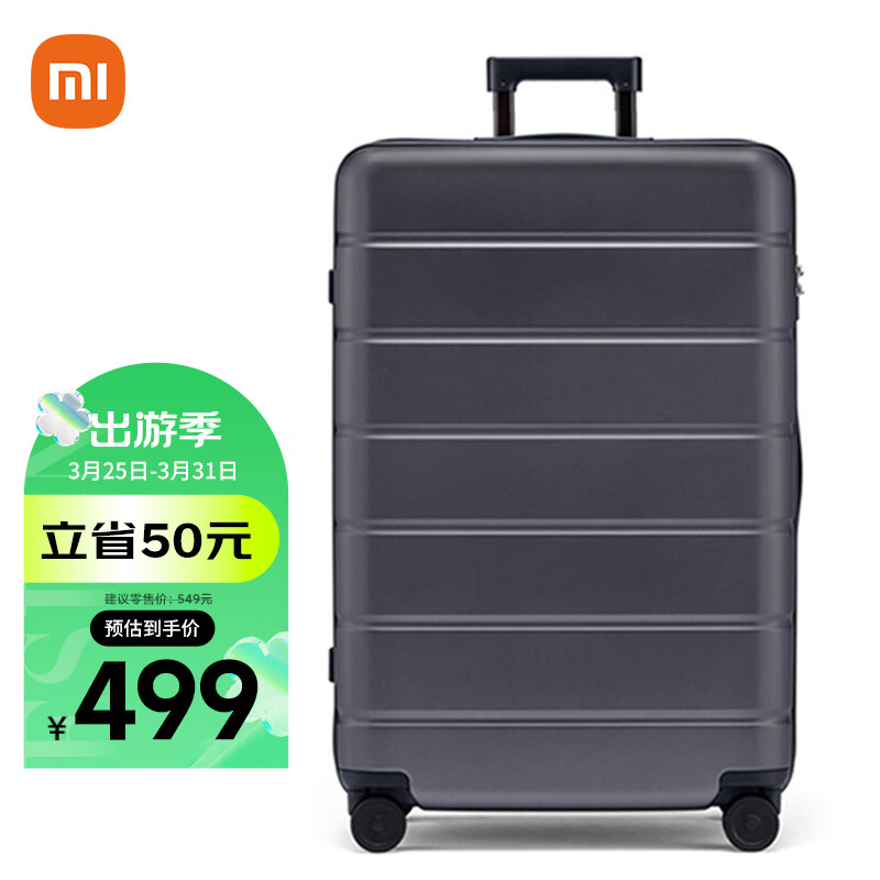 小米行李箱男女28英寸大容量拉杆箱防刮旅行箱耐磨耐用密码箱灰色价格:499.00元!