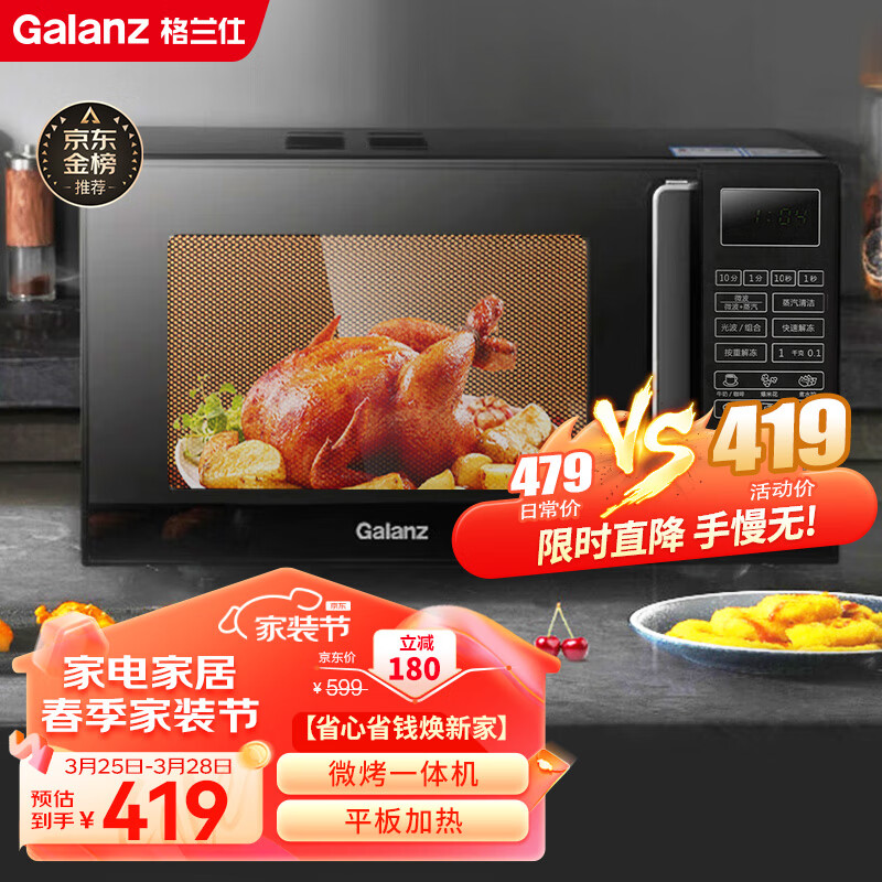 格兰仕微波炉 微波/光波杀菌 家用23升平板加热 微波炉烤箱一体机 光波炉 蒸汽清洁Q6(P0)价格:419.00元!