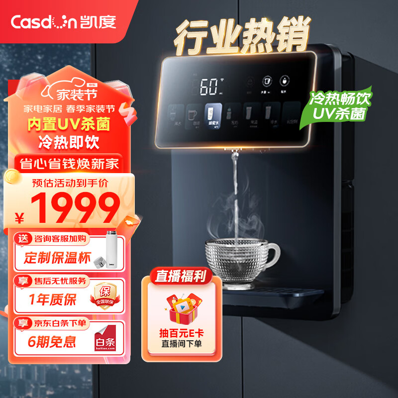 凯度(CASDON)家用管线机净水器管线机直饮机 管线机壁挂式 冷热一体 定量取水 智慧彩屏 壁挂式管线机 G1价格:1999.00元!