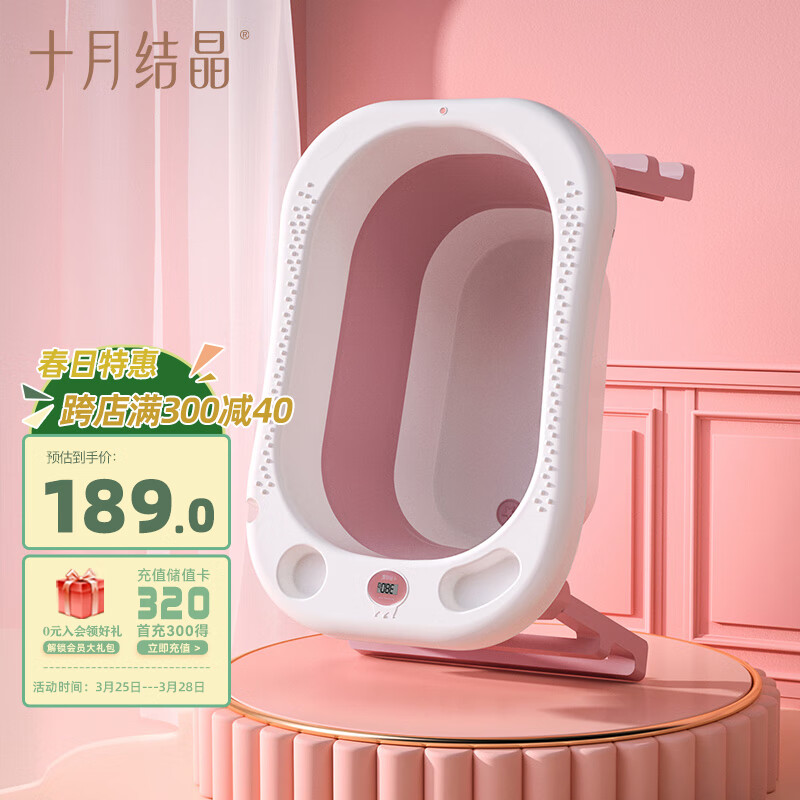 十月结晶婴儿浴桶 感温折叠浴盆洗澡盆 新生宝宝泡澡沐浴两用 尤兰达红价格:199.00元!