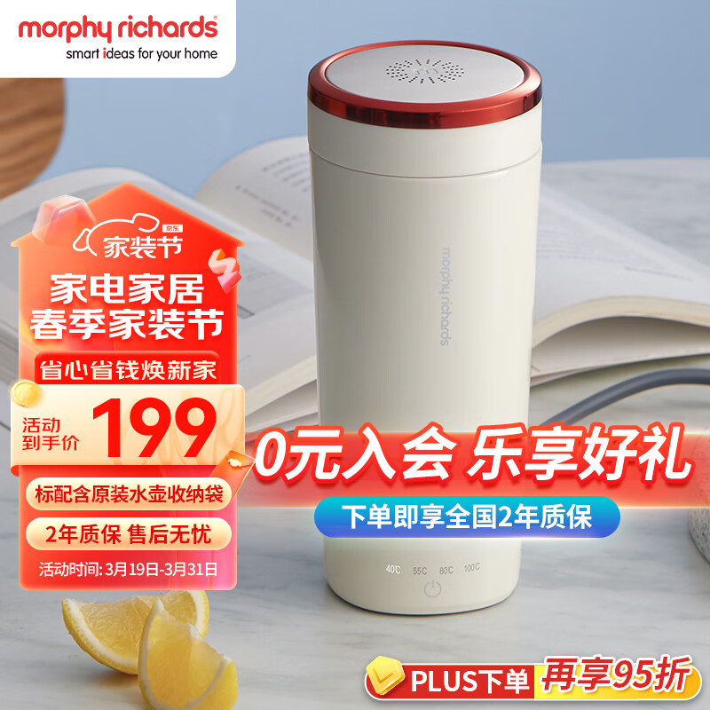 摩飞电器(Morphyrichards)电水壶 烧水壶便携式家用旅行电热水壶 随行冲奶泡茶办公室养生保温杯MR6060白价格:199.00元!