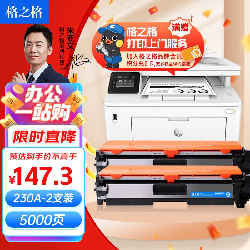 格之格m227fdw硒鼓 适用惠普cf230a硒鼓 m203dw m203d m203dn m227fdn m227sdn hp227硒鼓cf230a带芯片双支装价格:155.00元!