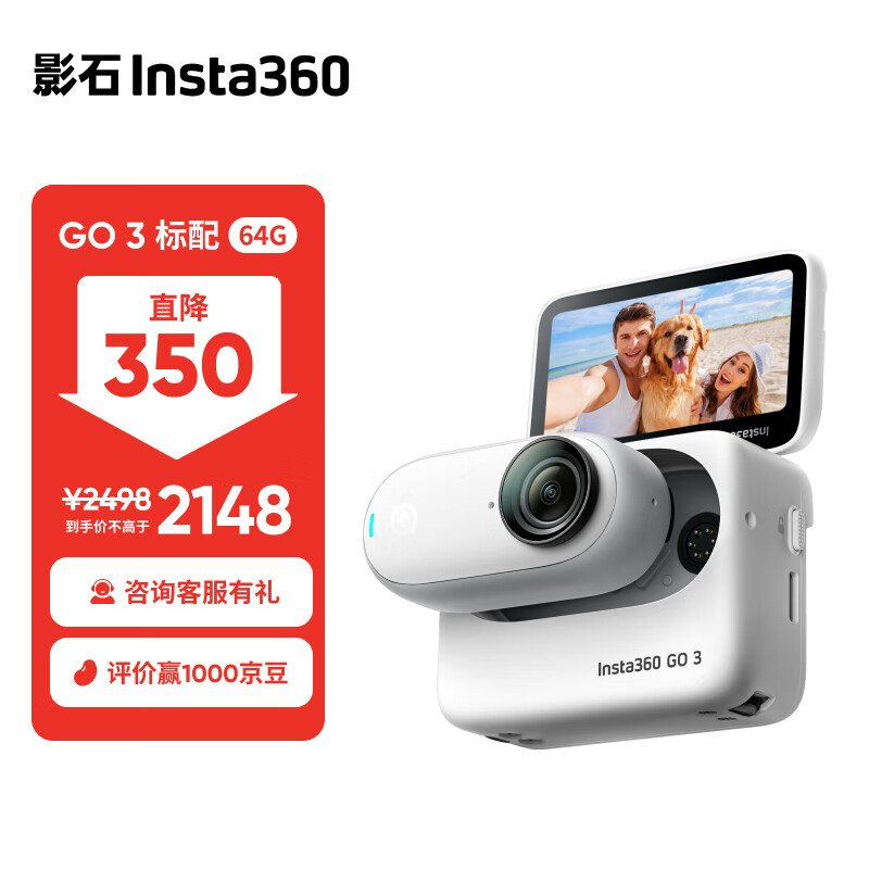 Insta360影石 GO 3拇指相机 运动亲子Vlog骑行宠物防水防抖运动相机(灵动白64G版)价格:2148.00元!