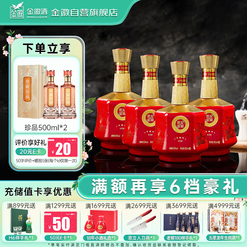 金徽 世纪金徽红五星 浓香型白酒 50度 500ml*4瓶 整箱装价格:1152.00元!