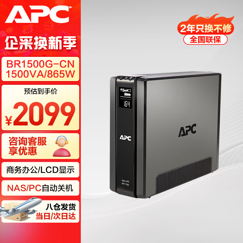 APC施耐德BR1500G-CN ups不间断电源 865W/1500VA nas电脑网络设备商务办公停电应急备用ups电源价格:2099.00元!