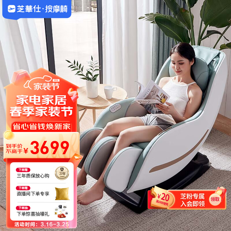 芝华仕(CHEERS)头等舱按摩椅家用送礼全身电动多功能太空舱小型迷你按摩椅生日礼物 M2050 奶油白-现货发货价格:3499.00元!