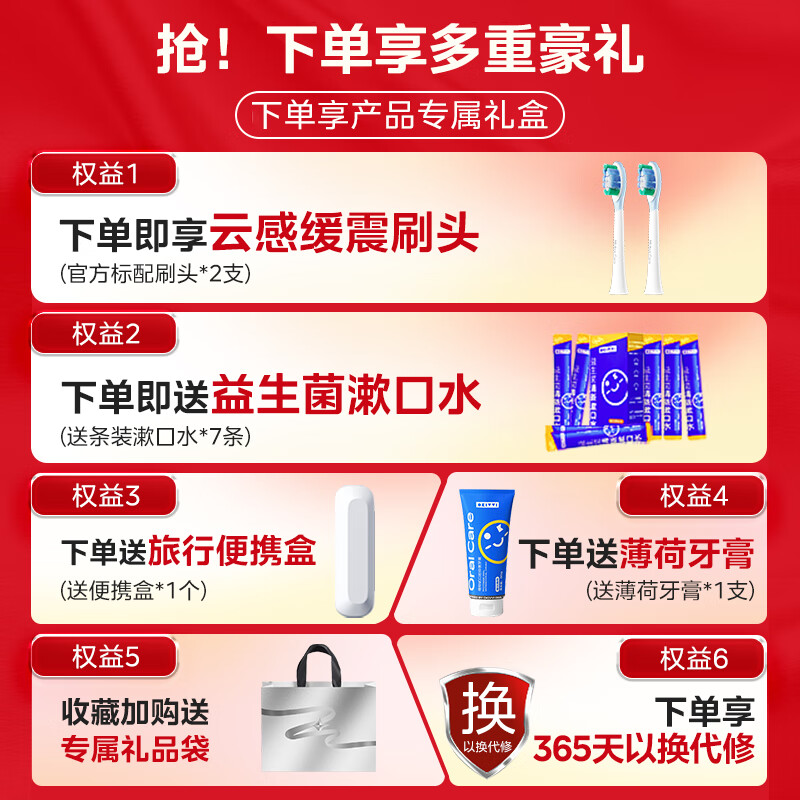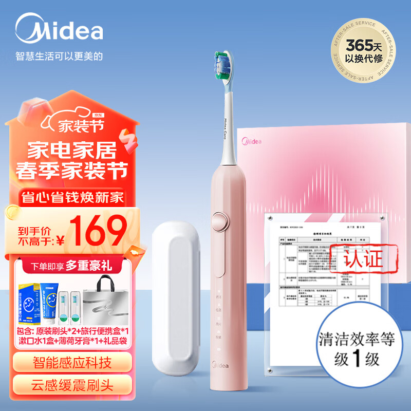美的(Midea)电动牙刷成人声波震动礼盒智能压感 软毛亮白 送礼礼物送女友(配云感刷头+旅行盒)YS5Pro粉价格:169.00元!