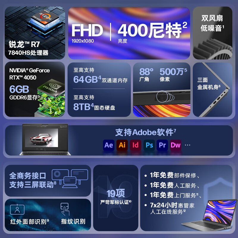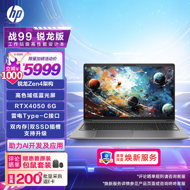 惠普(HP)战99 4nm锐龙 15.6英寸高性能笔记本AI电脑设计师本工作站 R7-7840HS RTX4050 16G 512 高色域价格:5999.00元!