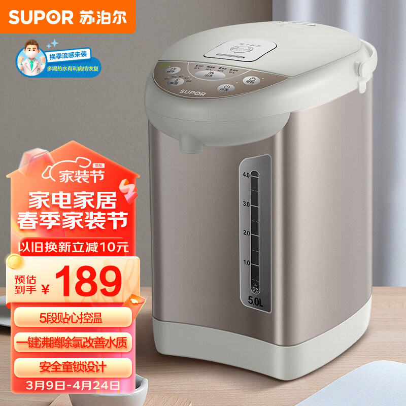 苏泊尔(SUPOR)电热水瓶 电热水壶双层烧水壶 5L大容量电水瓶 多段保温恒温电水壶 304不锈钢 SW-50T60A价格:189.00元!