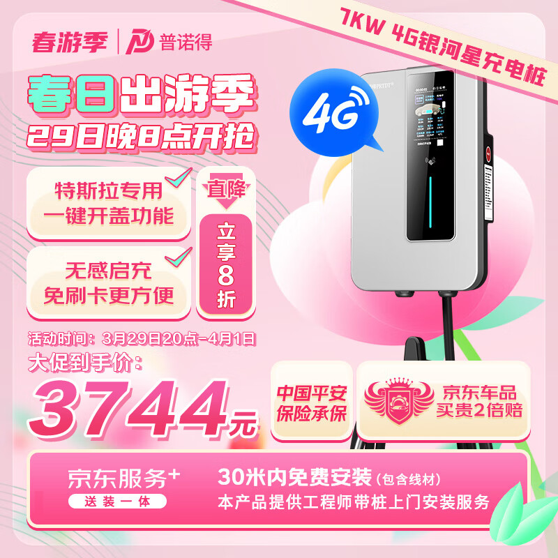 普诺得银河星4G版 7KW新能源电动汽车家用充电桩 适配于特斯拉比亚迪小鹏充电器送装一体含30米内安装价格:3744.00元!