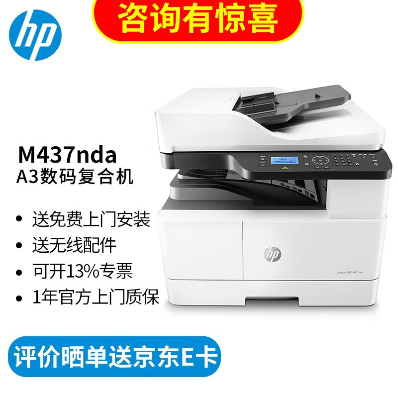 惠普(HP) a3打印机 437n a3a4黑白激光复印机扫描机一体机 办公商用 437nda【咨询-送无线配件和数据线(单独寄)】价格:7099.00元!