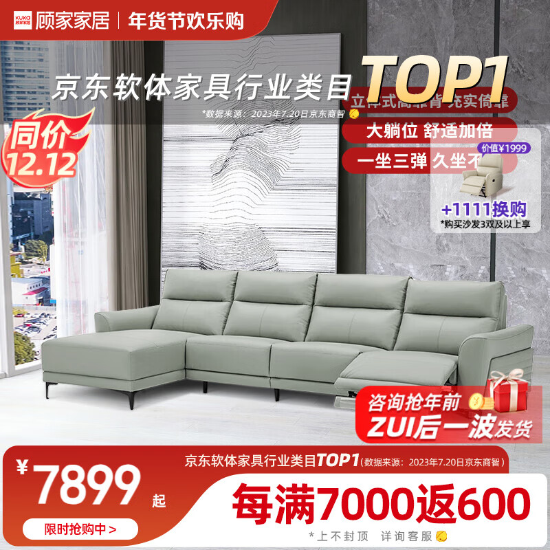 顾家家居皮沙发现代电动功能家具客厅沙发6055晨雾绿四人位躺右年后批发货价格:7899.00元!