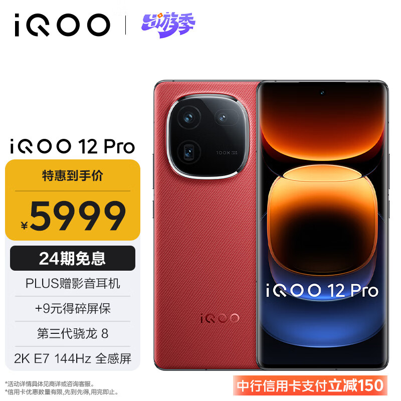 vivo iQOO 12Pro 16GB+1TB燃途版 2K E7 144Hz屏幕 大底主摄潜望式长焦 第三代骁龙 8 5G手机价格:5999.00元!