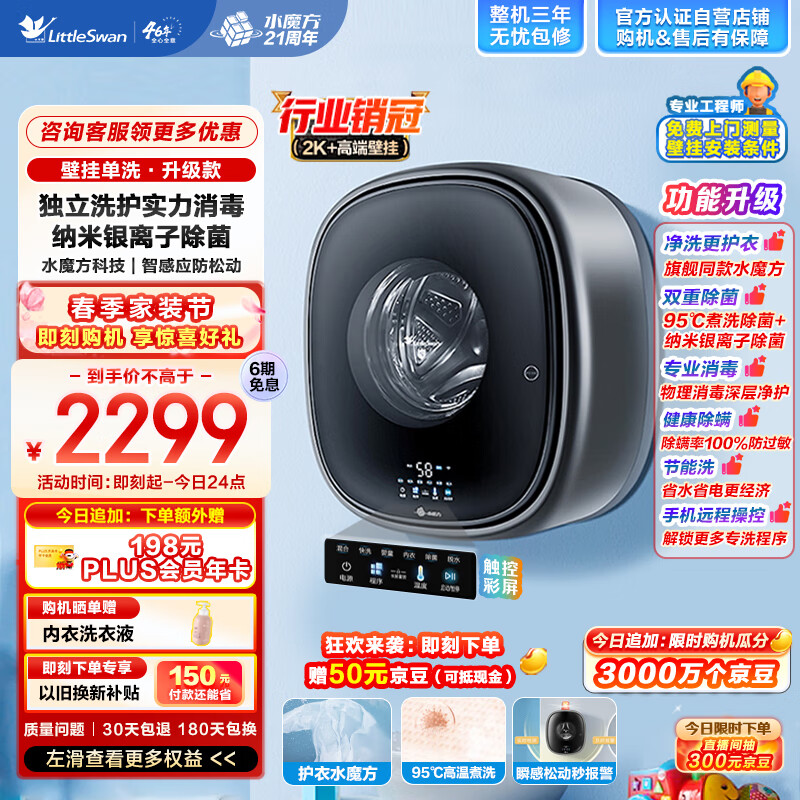 小天鹅(LittleSwan)壁挂洗衣机TG30V860EPRO 小海绵 3KG迷你滚筒洗衣机全自动 儿童婴儿洗衣机小型 挂壁式 水魔方价格:2499.00元!