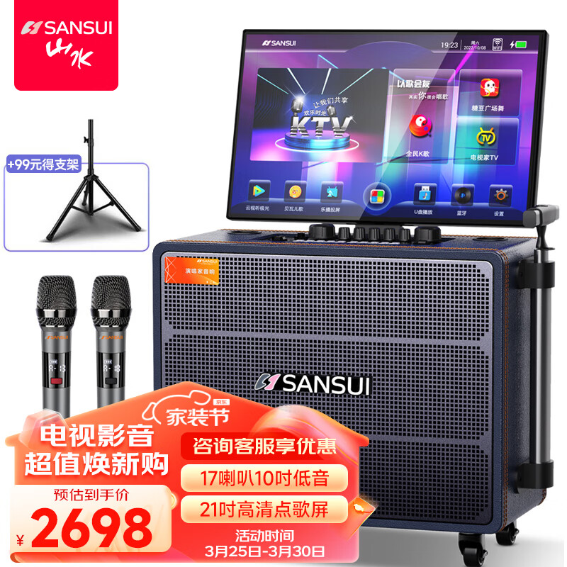 山水(SANSUI)Q109P广场舞音响带显示屏户外便携 家庭ktv音响套装 家用卡拉ok点歌机一体机视频机 电视k歌蓝牙价格:2670.00元!