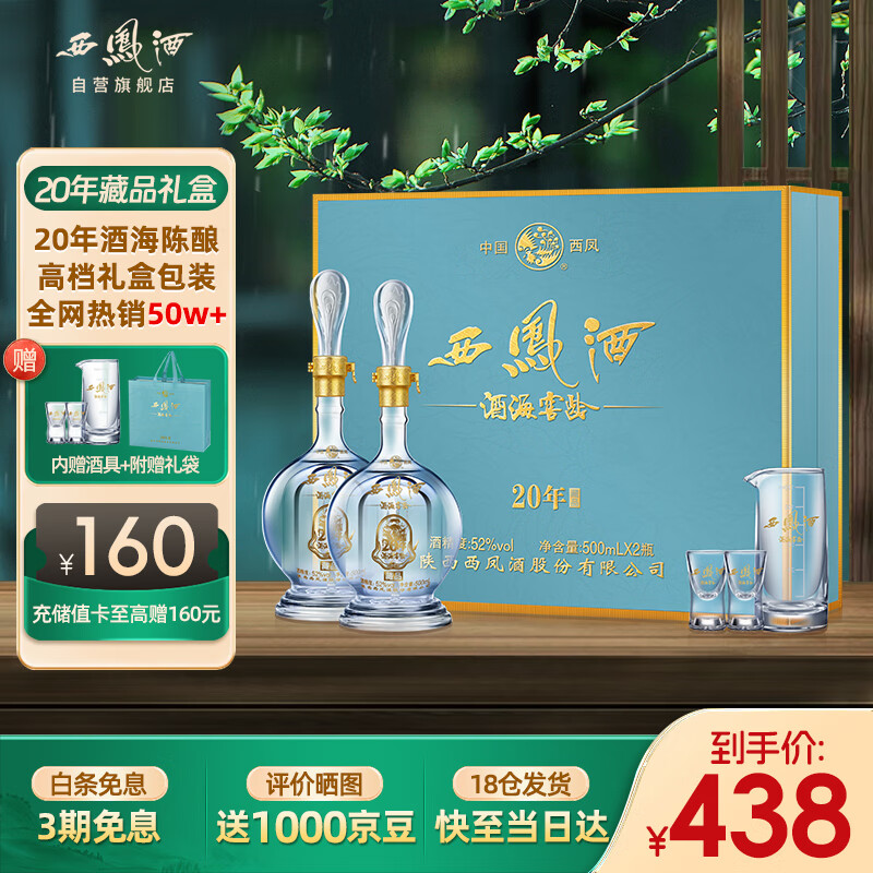 西凤酒 20年52度藏品陕西纯粮食凤香型白酒海窖龄宴请送礼盒装500mL*2价格:438.00元!