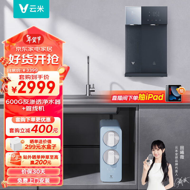 云米(VIOMI)小蓝调600G全屋净水套装净水器+冷热管线机Master 3两件套家用直饮加热即热净水器净水机价格:3399.00元!