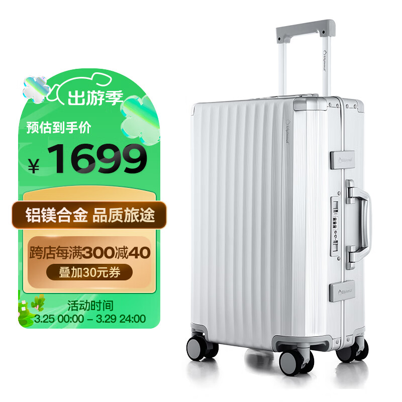 Diplomat外交官行李箱大容量镁铝合金铝框男女旅行拉杆箱TL-25053银24英寸价格:1969.00元!
