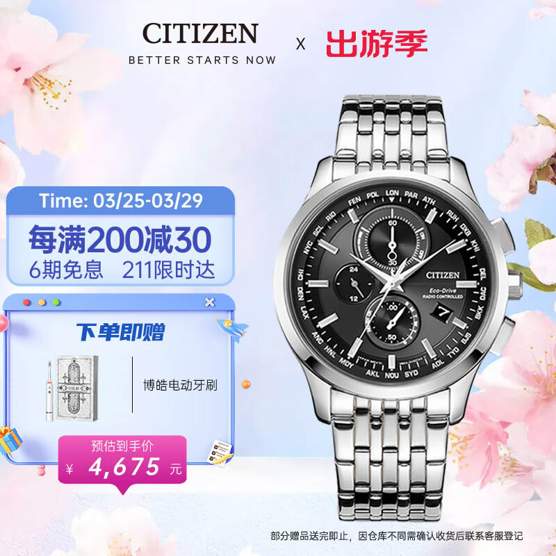 西铁城(CITIZEN)手表男日韩表光动能电波日期显示钢带商务送礼物男友AT8110-61E价格:5195.00元!