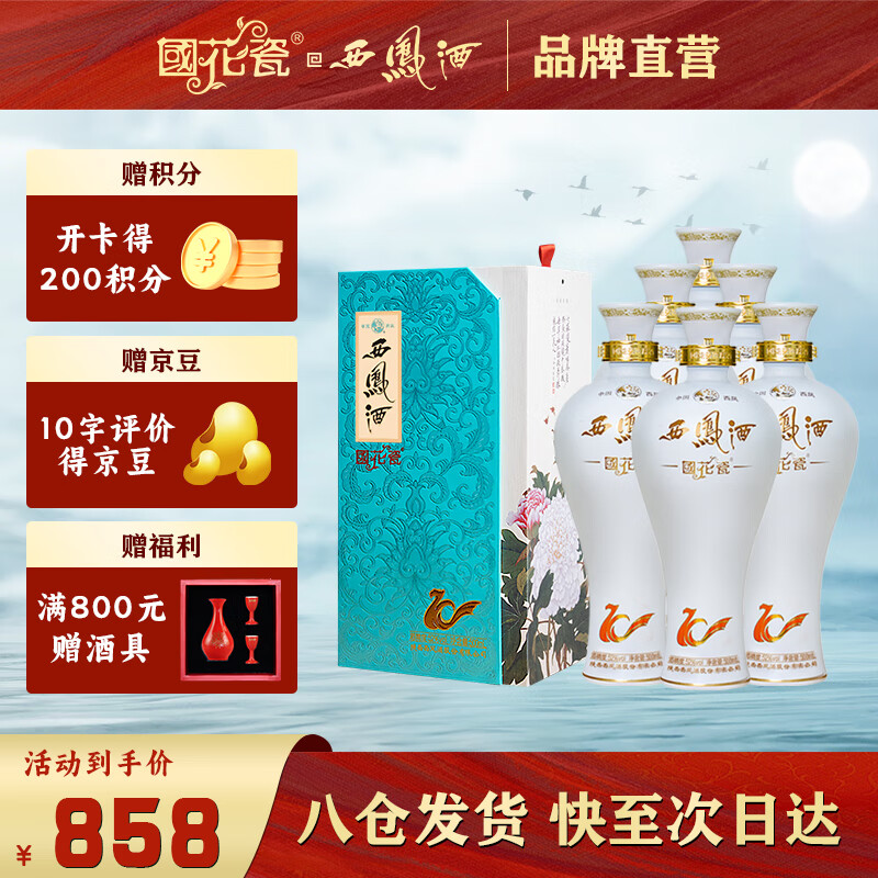 西凤酒国花瓷国潮白酒10年纪念版52度整箱装500ml*6瓶【出游季】价格:1194.00元!