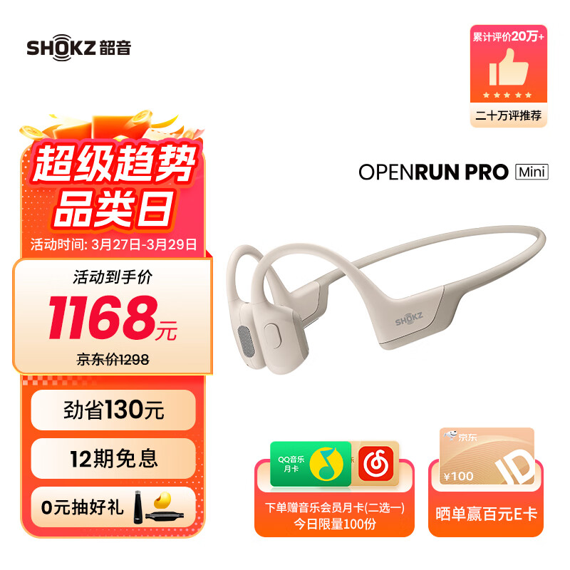 韶音(SHOKZ)OpenRun Pro骨传导蓝牙耳机开放式耳机运动无线耳骨传导耳机跑步骑行不入耳佩戴S810/S811 【适合女士和青少年使用】mini黄价格:1168.00元!