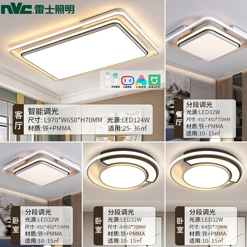 雷士照明(NVC)led室内吸顶灯套餐 客厅大灯卧室餐厅灯饰灯具 三室二厅价格:3599.00元!