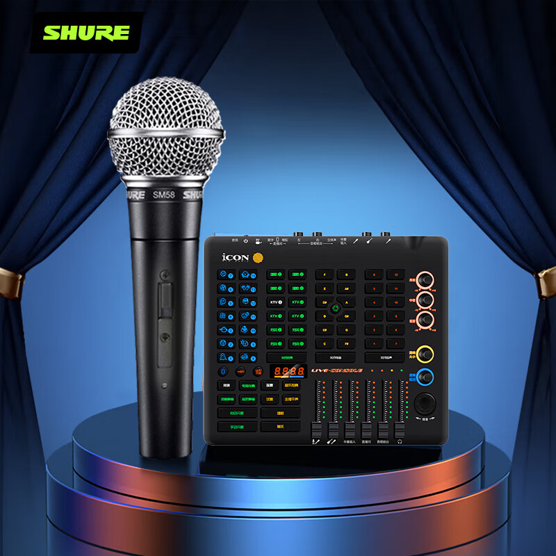 SHURE sm58s 动圈麦套餐 icon Live Console外置声卡电脑主播唱歌直播全套游戏录音麦克风专业有声书设备套装价格:2337.00元!