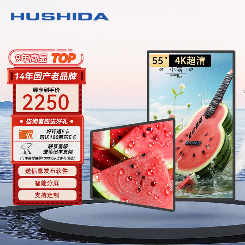互视达(HUSHIDA)55英寸壁挂广告机显示屏高清液晶数字标牌信息视窗吊挂电梯宣传屏网络版(非触摸)LY-55价格:2250.00元!