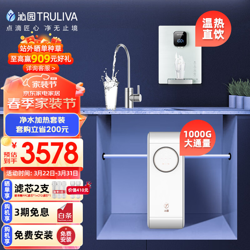 沁园(TRULIVA)小白鲸Pro1000G二件套装 净水器UR-S51046i+加热管线机LNW580-5W 加热净水器套装价格:3578.00元!