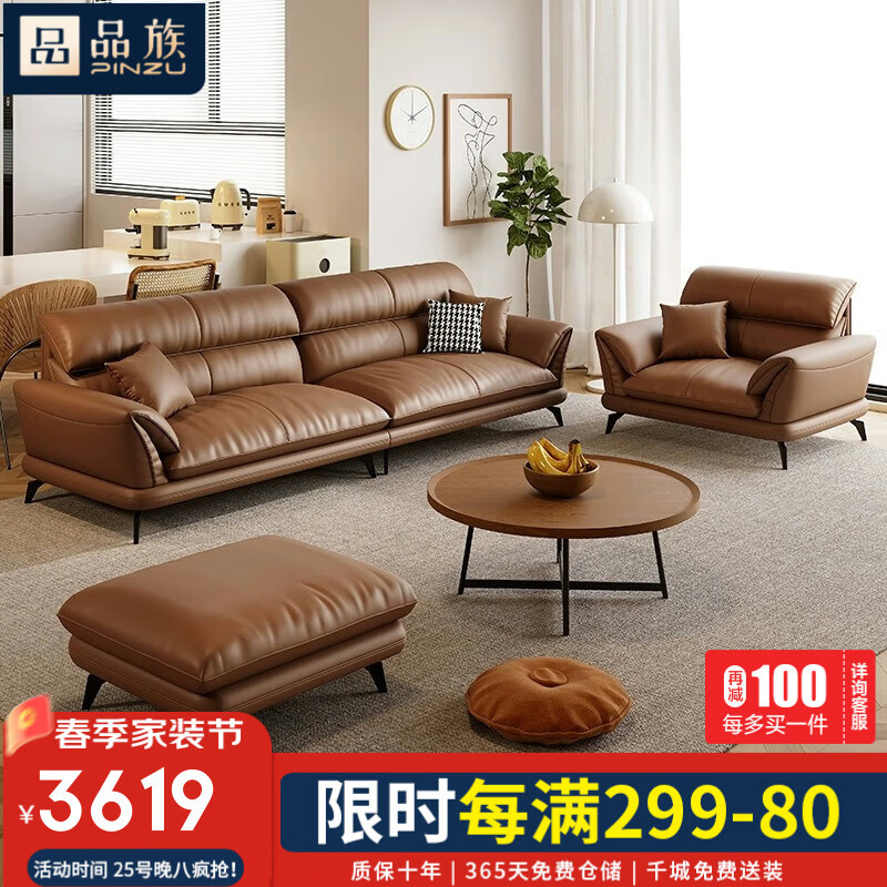 品族意式真皮沙发头层牛皮沙发客厅小户型直排沙发PZ-688 2.8米四价格:4899.00元!