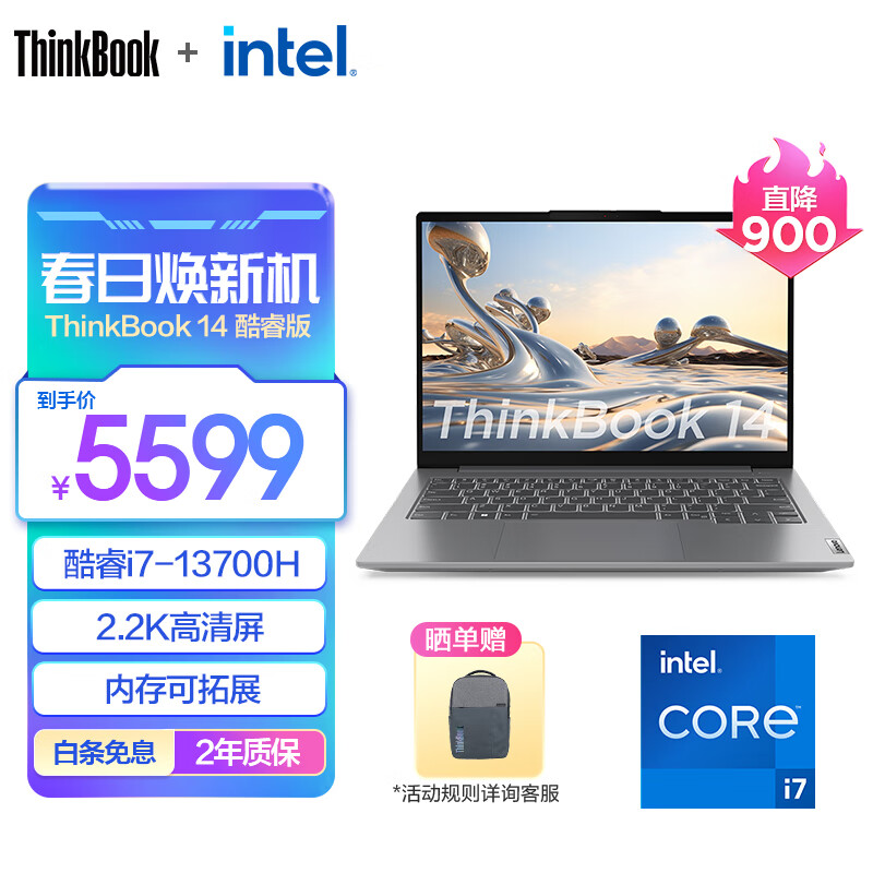 ThinkPad 联想ThinkBook14/16 13代英特尔酷睿标压处理器 商务轻薄笔记本电脑 14英寸:i7-13700H 16G 1T6MCD价格:6499.00元!