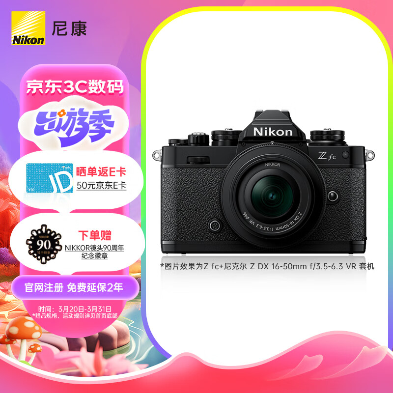尼康 Nikon Z fc 微单数码相机 黑色套机 (Zfc)微单套机(Z DX 16-50mm f/3.5-6.3 VR 微单镜头)价格:7349.00元!